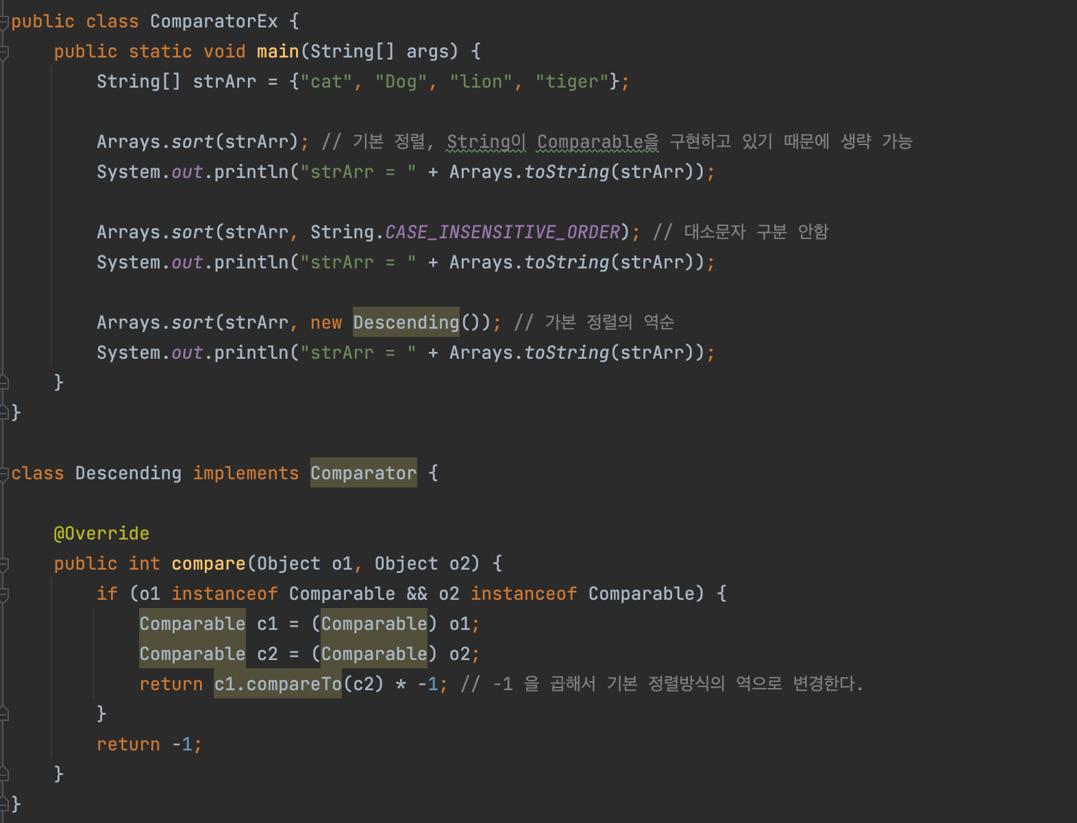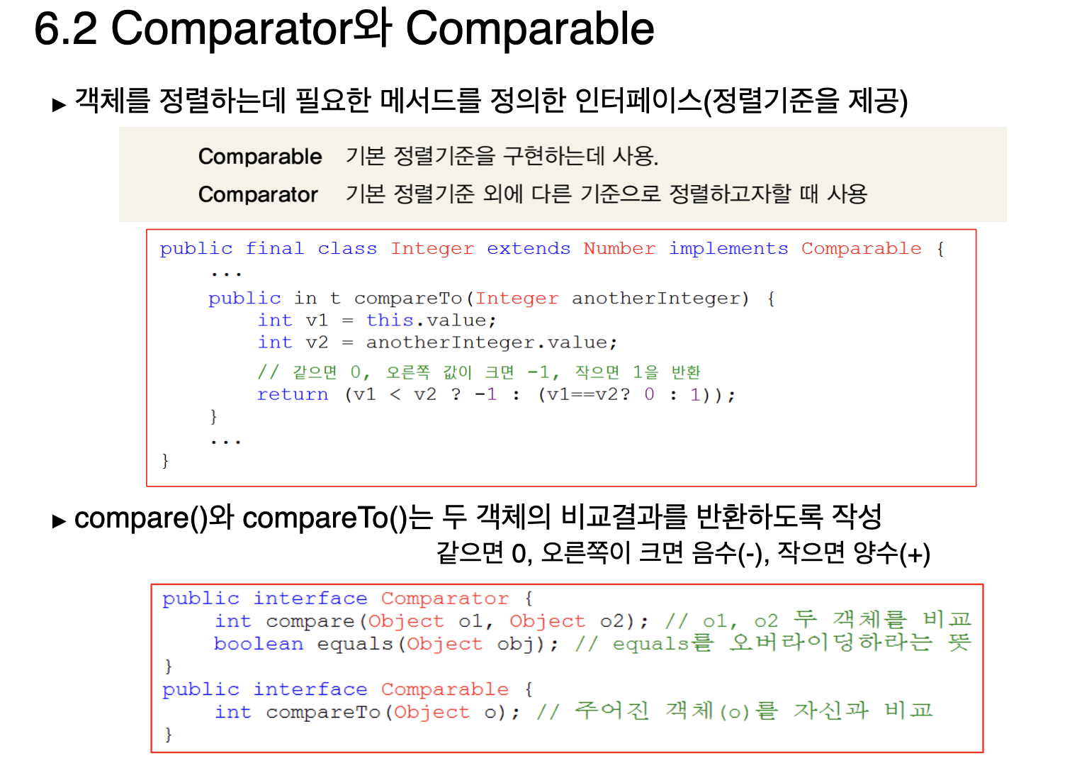 compare()์ compareTo()๋ ์ ์ธ ํํ์ ์ด๋ฆ๋ง ์ด์ง ๋ค๋ฅผ ๋ฟ ๋ ๊ฐ์ฒด๋ฅผ ๋น๊ตํ๋ค๋ ๊ธฐ๋ฅ์ ๋ชฉ์ ์ผ๋ก ๊ณ ์๋ ๊ฒ์ด๋ค.