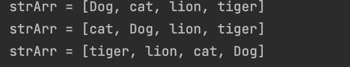 -> CASE_INSENSTIVE_ORDER ๋ฅผ ์ด์ฉํ๋ฉด ๋ฌธ์์ด์ ๋์๋ฌธ์ ๊ตฌ๋ถ์์ด ์ ๋ ฌํ ์ ์๋ค.