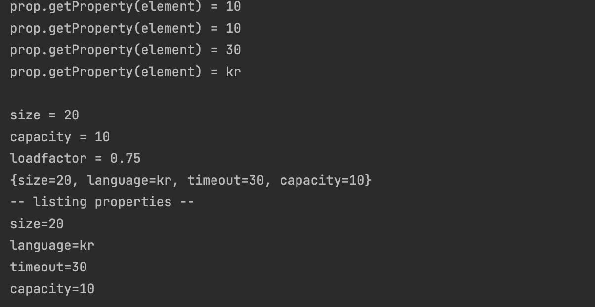 : Properties์ ์ ์ฅ๋ ๊ฐ์ ์ฝ์ด์ค๋ ์ผ์ ํ๋๋ฐ, ๋ง์ผ ์ฝ์ด์ค๋ ค๋ ํค๊ฐ ์กด์ฌํ์ง ์์ผ๋ฉด ์ง์ ๋ ๊ธฐ๋ณธ๊ฐ์ ๋ฐํํ๋ค.