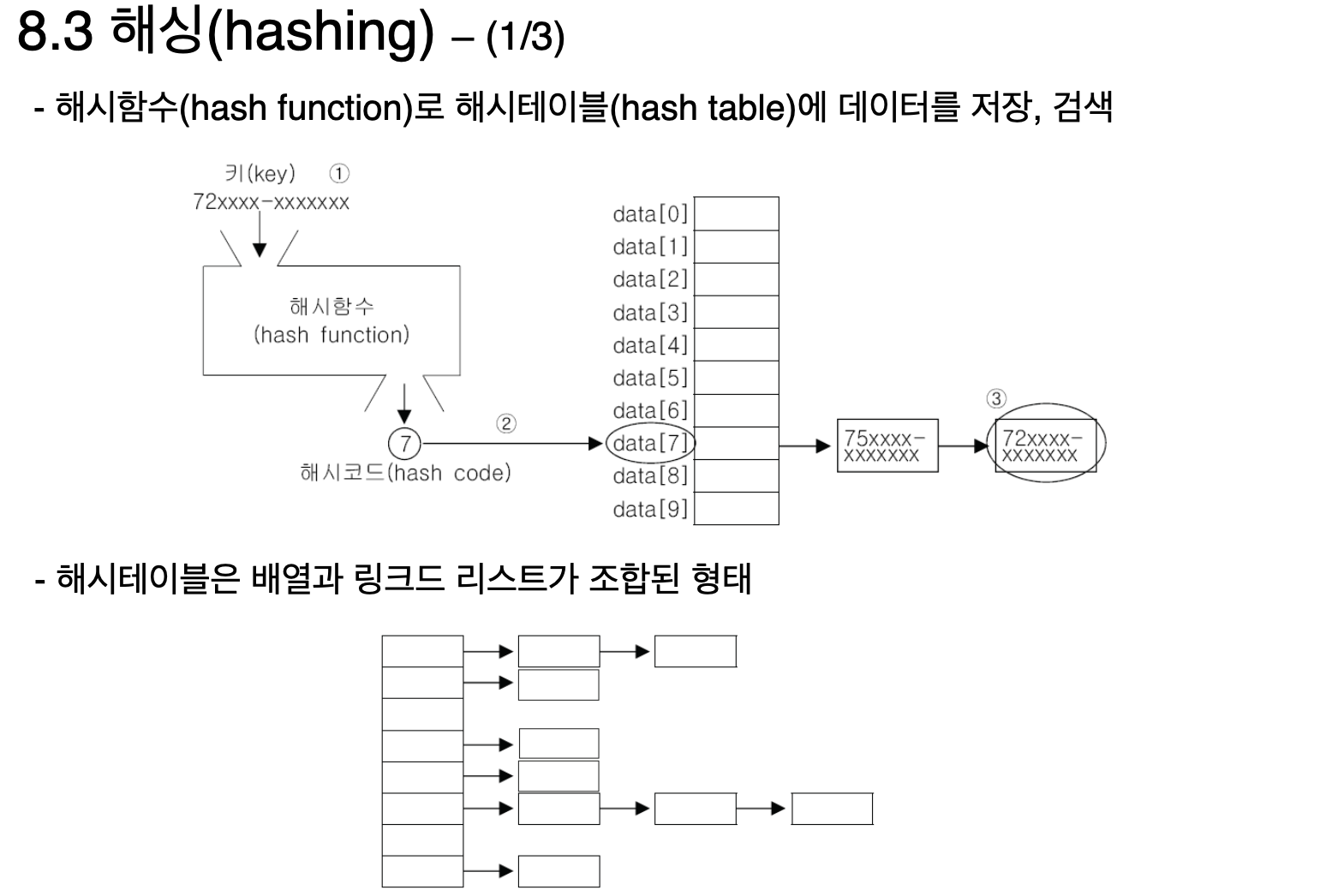-> ํด์ฑ์์ ์ฌ์ฉํ๋ ์๋ฃ๊ตฌ์กฐ๋ ๋ฐฐ์ด๊ณผ ๋งํฌ๋ ๋ฆฌ์คํธ์ ์กฐํฉ์ผ๋ก ๋์ด ์๋ค.