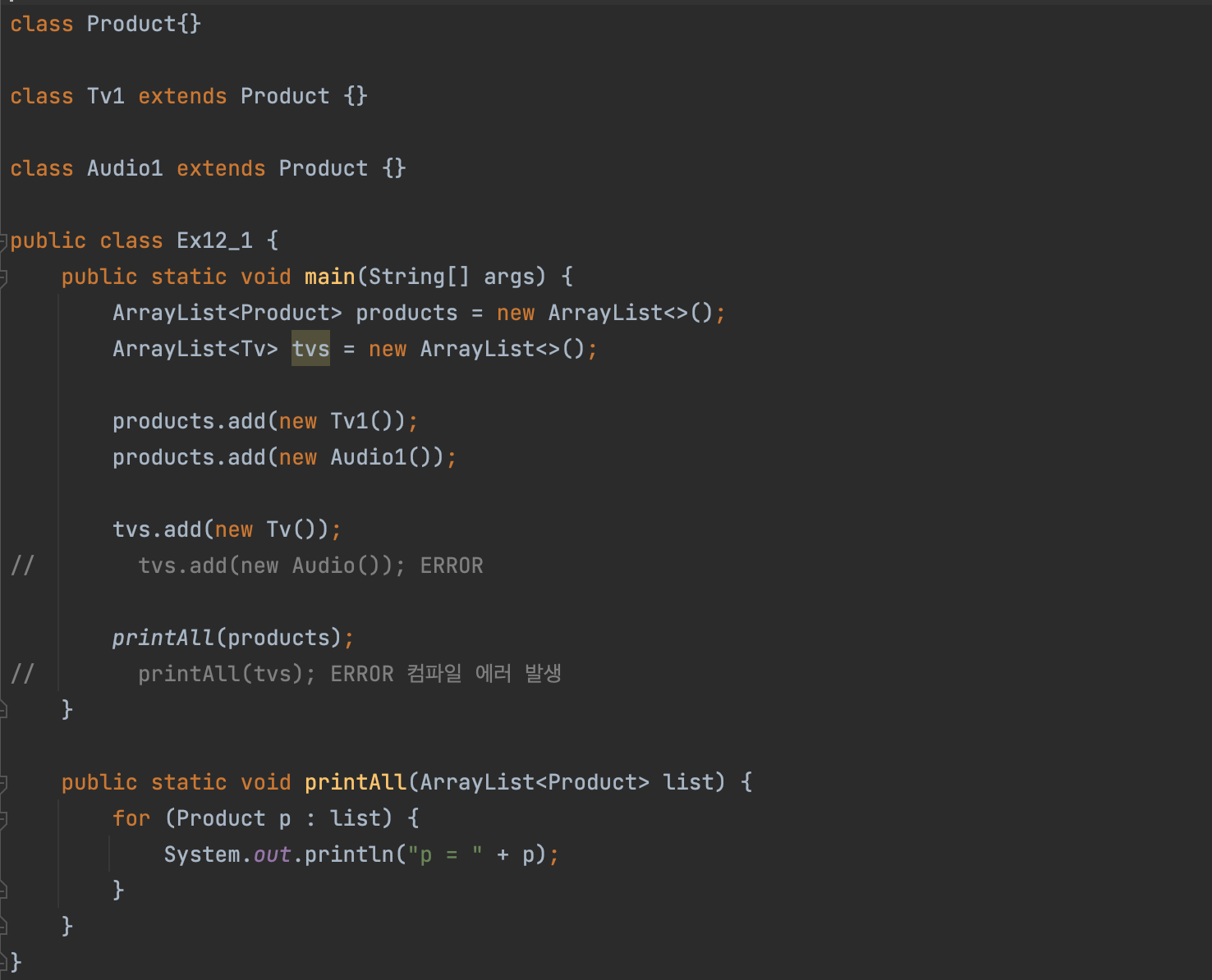 ex) Arraylistμ κ°μ 컬λ μ ν΄λμ€λ λ€μν μ’ λ₯μ κ°μ²΄λ€μ λ΄μ μ μκΈ°λ νμ§λ§ λ³΄ν΅ ν μ’ λ₯μ κ°μ²΄λ₯Ό λ΄λ κ²½μ°κ° λ λ§λ€.