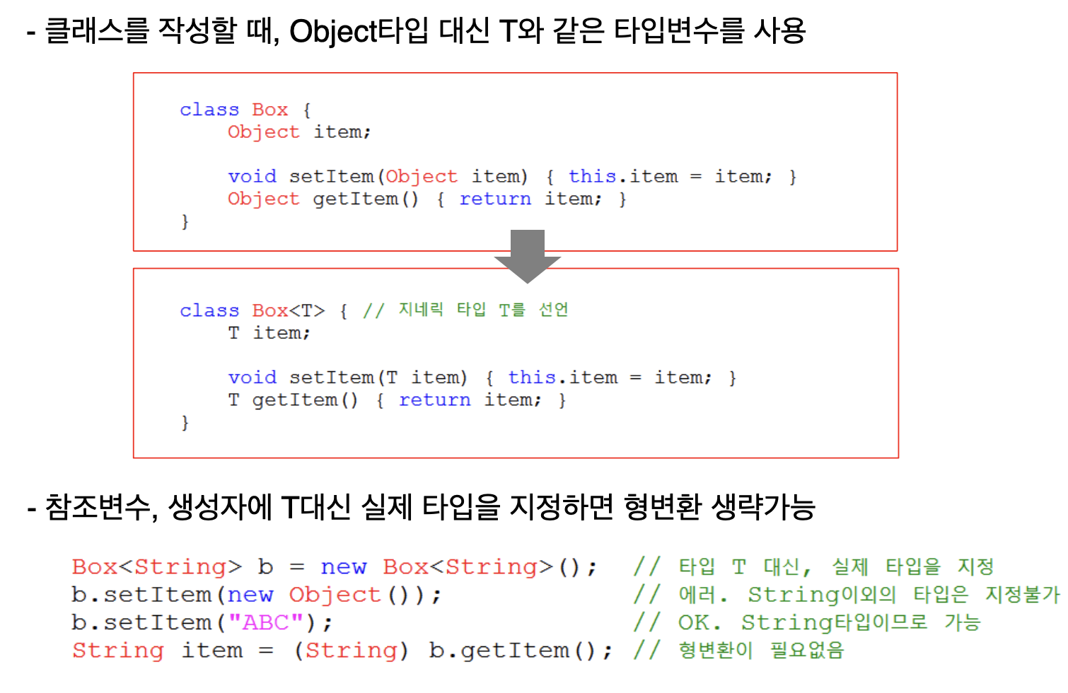 κ·Έλ¦¬κ³ μ§λ€λ¦ ν΄λμ€κ° λ Boxν΄λμ€μ κ°μ²΄λ₯Ό μμ±ν λλ μ°Έμ‘°λ³μμ μμ±μμ νμ T λμ μ μ¬μ©λ μ€μ νμ μ μ§μ ν΄μ£Όμ΄μΌ νλ€.