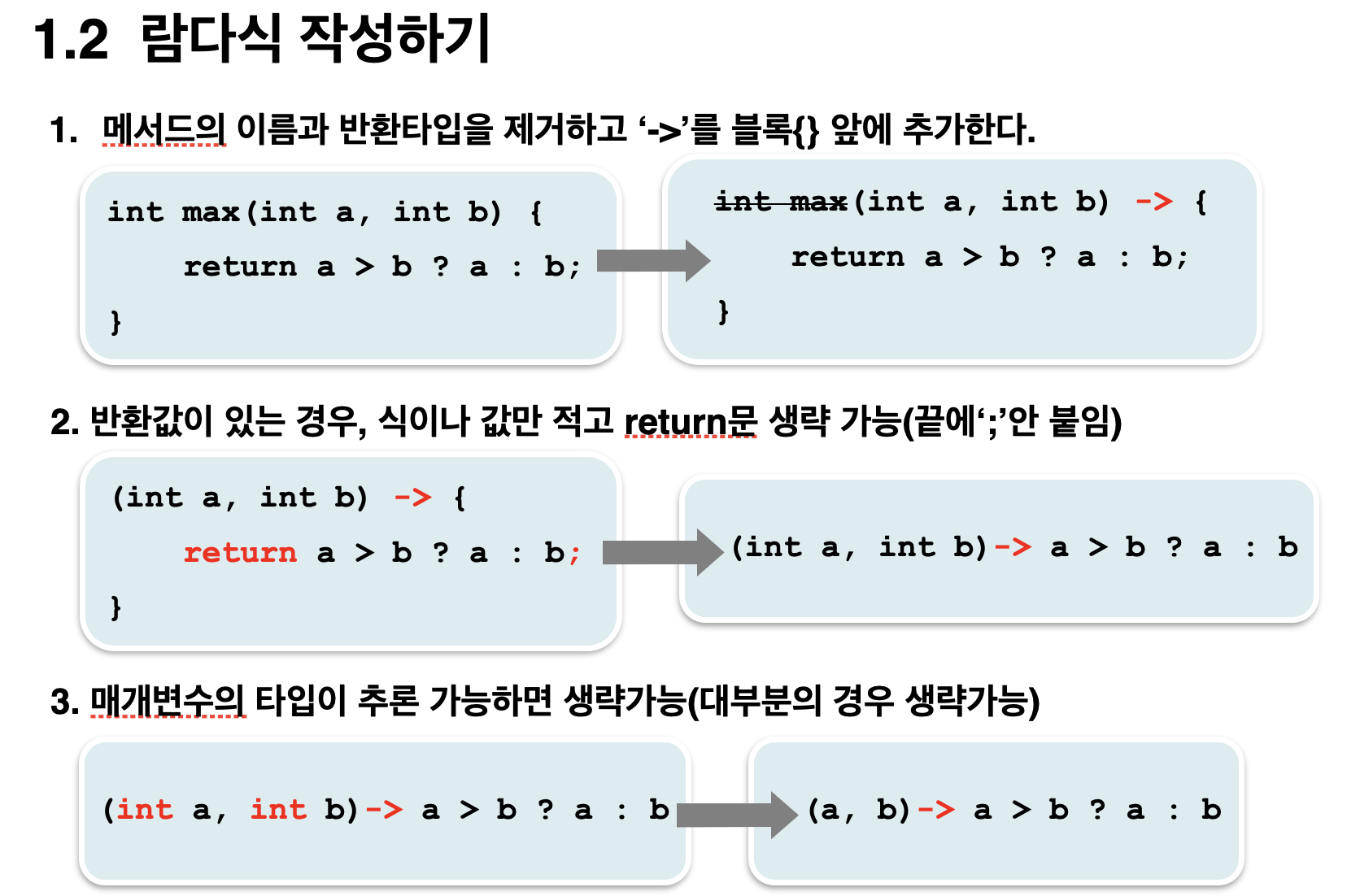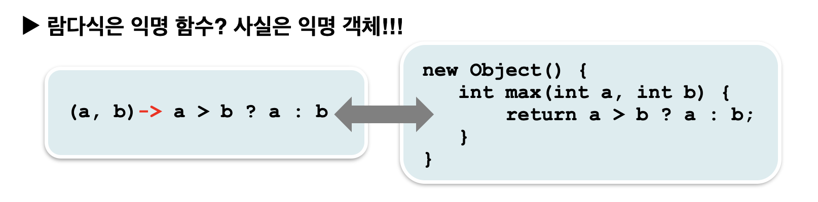 λ©μλλ₯Ό λλ€μμΌλ‘ νννλ©΄ λ©μλμ μ΄λ¦κ³Ό λ°νκ°μ΄ μμ΄μ§λ―λ‘ λλ€μμ μ΅λͺ ν¨μλΌκ³ λ νλ€.