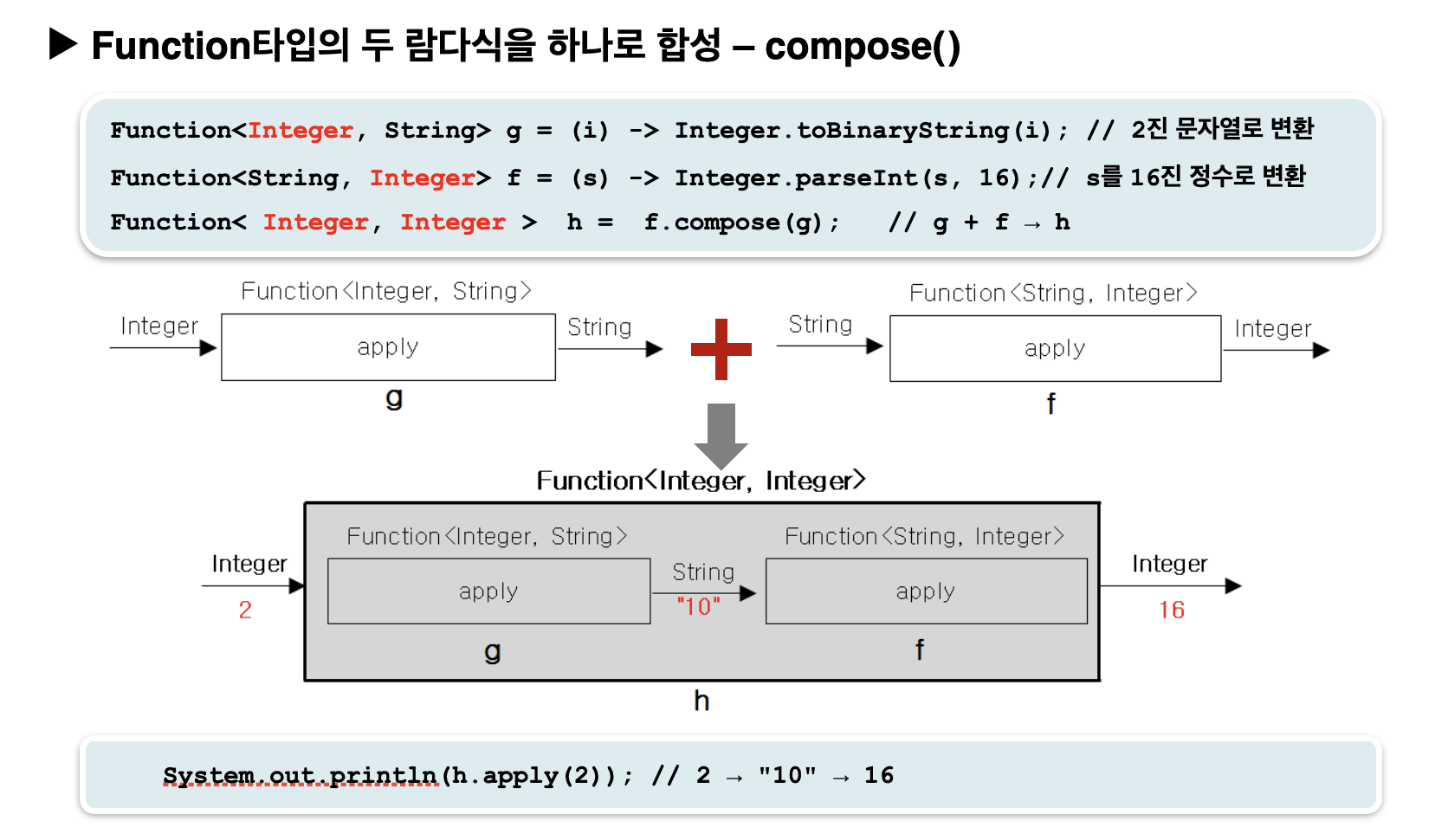 f.andThen(g)λ f λ¨Όμ μ μ©νκ³ κ·Έ λ€μ gλ₯Ό μ μ©νλ€.