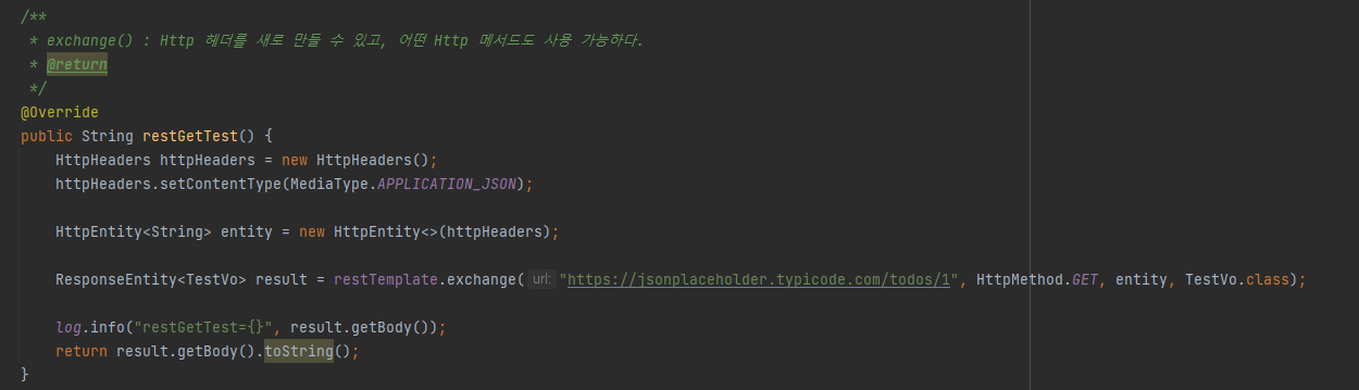 : ์ฃผ์ด์ง URL ์ฃผ์๋ก HTTP GET ๋ฉ์๋๋ก ๊ฒฐ๊ณผ๋ ResponseEntity๋ก ๋ฐํ๋ฐ๋๋ค.