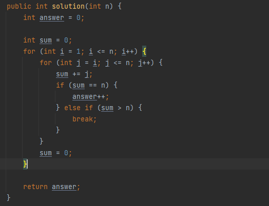 μμ°μ nμ΄ λ§€κ°λ³μλ‘ μ£Όμ΄μ§ λ, μ°μλ μμ°μλ€λ‘ nμ νννλ λ°©λ²μ μλ₯Ό returnνλ solutionλ₯Ό μμ±ν΄μ£ΌμΈμ.