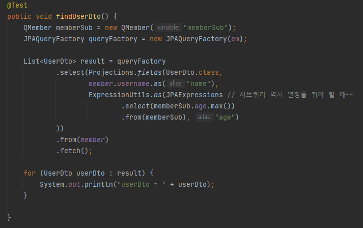 ExpressionUtils.as(source, alias) : ํ๋๋, ์๋ธ์ฟผ๋ฆฌ์ ๋ณ์นญ ์ ์ฉ