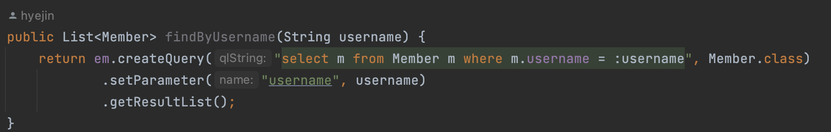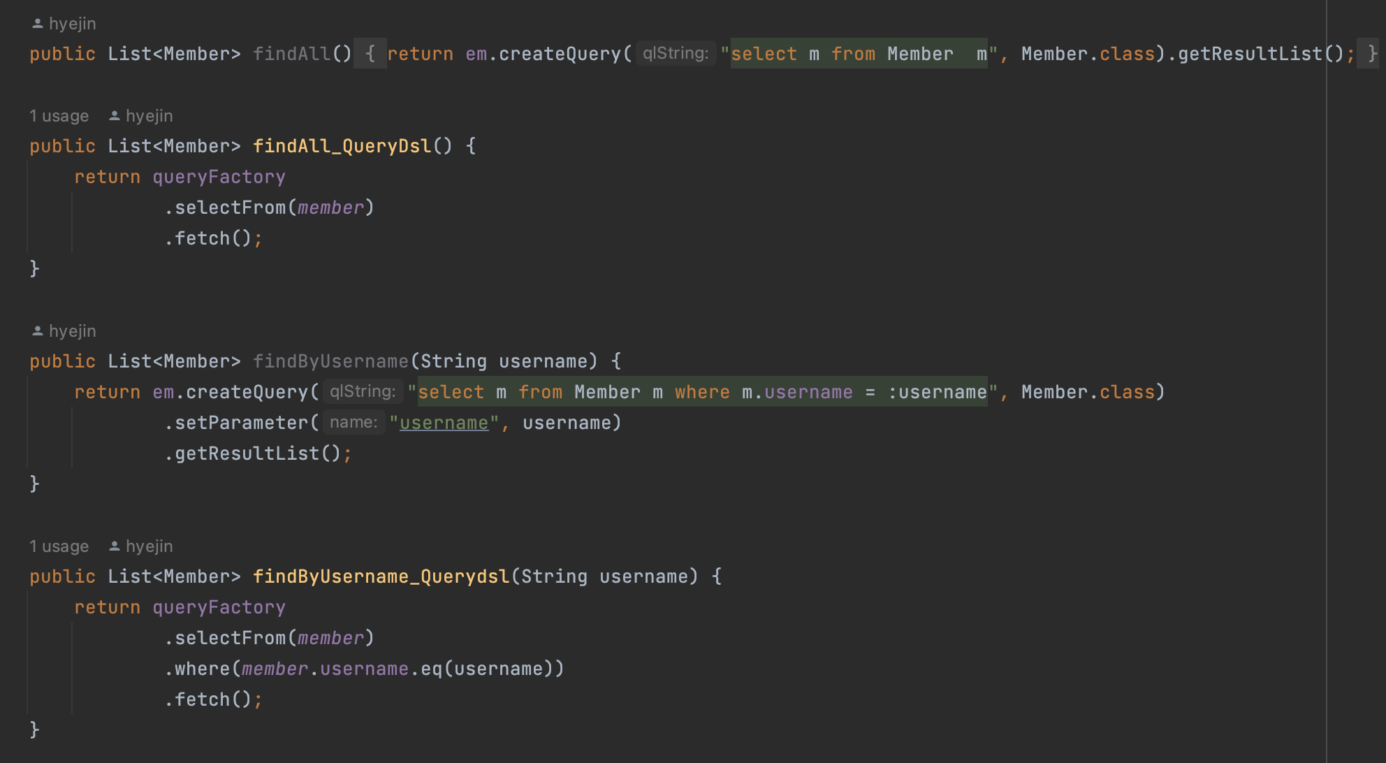 findAll()๊ณผ findByUsername()์ ๋ํด์ Querydsl์ง ์ฝ๋์ด๋ค.