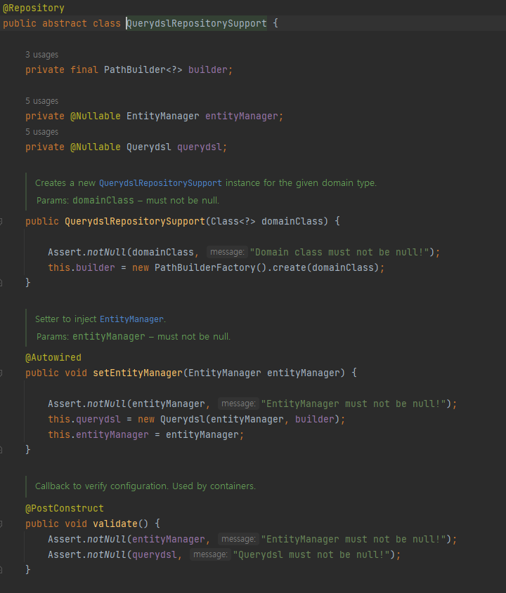 (Querydsl4RepositorySupport์ ๊ตฌํ๋์ด ์๊ธฐ ๋๋ฌธ)