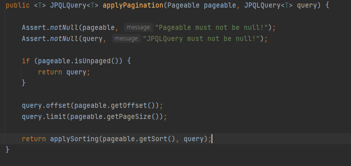applyPagination()์ offset, limit์ด ์๊ธฐ ๋๋ฌธ์ ์ด ๊ฐ๋ค์ ์๋ตํด์ค๋ ๋๋ค.
