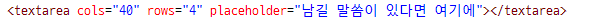 1๏ธโฃ cols : ํ ์คํธ ์์ญ์ ๊ฐ๋ก ๋๋น๋ฅผ ๋ฌธ์ ๋จ์๋ก ์ง์ ํ๋ค.