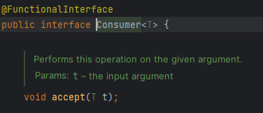 : cosumerλ T νμ μ κ°μ²΄λ₯Ό μΈμλ‘ λ°κ³ , 리ν΄κ°μ μλ€.